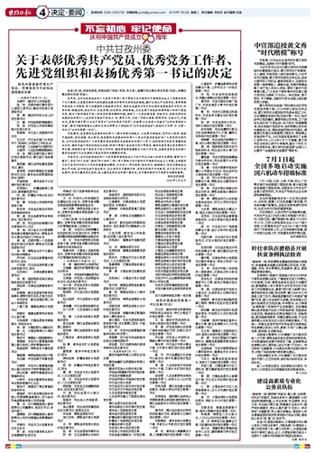 近年来,全州各级党组织和广大党员干部深入学习贯彻习近平新时代中国特色社会主义思想和党的十九大精神,认真落实新时代党的建设总要求和新时代党的组织路线,履行全面从严治党责任,紧紧围绕州委总体工作格局,努力创建国家全域旅游示范区、国家生态建设示范区和全国民族团结进步示范州,改革创新、锐意进取,担当作为、攻坚克难,创先争优、积极奉献,充分发挥了党组织的领导核心和战斗堡垒作用,展示了新时期共产党人的良好形象和精神风貌,涌现了一大批成绩显著、贡献突出、表现优异的先进集体和优秀个人。在庆祝中国共产党成立 98 周年之际,为进一步树立典型、鲜明导向、弘扬正气,州委决定,表彰吕建平等55名共产党员为“全州优秀共产党员”,扎珠等50名党务工作者为“全州优秀党务工作者”,康定市榆林街道公主桥社区党支部等50个党组织为“全州先进党组织”;表扬刘卫东等 50 名第一书记为“全州优秀第一书记”。