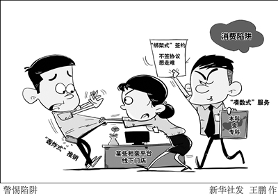 “短信电话狂轰滥炸”“不签协议想走难,上厕所都有人跟着”“推荐时说学历是本科,见面变专科了”……近来,不少相亲者向“新华视点”记者投诉,部分开通了线上平台的相亲机构在线下大搞“轰炸式”推销、“绑架式”签约、“凑数式”服务,严重损害消费者权益。