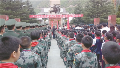 12月24日,泸定县泸定桥小学,学校正在进行双拥主题活动,一个个身着迷彩服的小“军人”唱着嘹亮的《二十二勇士中队队歌》,让革命的旗帜在新时代的泸定高高飘扬。泸定桥小学校长贺卫东介绍,学校双拥工作从娃娃抓起,把国防教育纳入中小学课程,建立了“二十二勇士中队”,传承红军长征精神,着力培养新时代的红色少年,被泸定县人武部命名为“少年军校”。