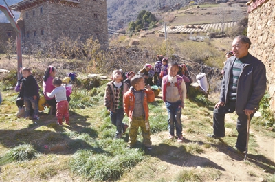 虽然代课教师的工资从当年的每月200元涨到了现在每月800元,然而在以市场经济为主体的社会里,800元工资的人群属于低收入群体。尽管如此,阿布里老师依然早出晚归,在那条他闭上眼都能走的小径上来回奔波,依旧呕心沥血教书育人,那郎朗的读书声在藏寨的上空久久回荡。每天上学放学路上,孩童们在阿布里老师的带领下,在小径上排着整齐的队伍,撒下一路歌声一路欢笑。