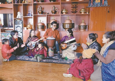 1月5日,理塘县村戈乡芒康村的年轻牧民和小孩聚在批罗家定居房,用藏族弹唱乐器曼陀铃、手鼓边弹边敲边唱赞美家乡新生活,表达高寒牧区牧民脱贫后的喜悦心情,迎接新年的到来和对美好生活的向往。 芒康村平均海拔4187米,全村共50户309人,其中建档立卡贫困户29户192人,属于典型的高海拔纯牧区深度贫困村。近年来,理塘县和对口帮扶的四川广播电视大学以“屋顶革命”帮扶工程为抓手,围绕解决“两不愁、三保障”这一重大政治任务,把扶贫与扶志、扶智相结合,外力帮扶与激发内生动力相结合,在芒康村累计投入资金近160万元,深入实施基础设施建设、教育扶贫、产业扶贫、消费扶贫和社会扶贫。通过短短两年的努力,整个芒康村的村容村貌发生了可喜的变化,生活水平显著提高,实现了稳定增收,内生动力进一步激发,感恩意识进一步增强,芒康村正向幸福美丽的牧民新村迈进。图为当地牧民们正在欢歌迎新年。 理塘县融媒体中心 叶强平 陶军 摄影报道 |