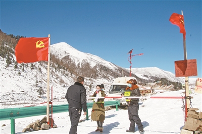 冬日的莫斯卡村,滴水成冰。由于其地处两州三县的结合部,管控难度大。在卡点口,三位民兵不顾严寒天气,忠于职守,对过往车辆人员进行登记,被当地老百姓亲切地称为“莫斯卡村老百姓的守护神”。图为该卡点口值守的三位民兵。 杨全富 摄影报道