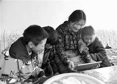 在西藏山南市贡嘎县森布日安置点的新家里,看到记者从双湖带来爸爸妈妈的视频留言,15岁的尼玛次仁(左一)和奶奶以及弟弟妹妹笑得合不拢嘴。