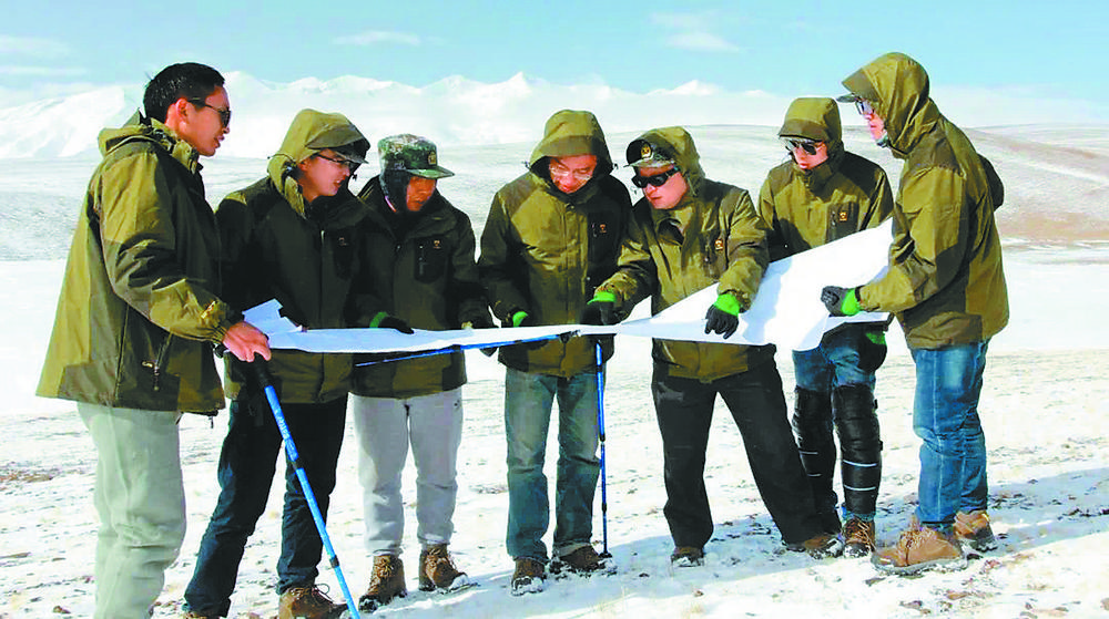 中国中铁二院川藏铁路项目青年突击队在雪域高原进行线路踏勘。 中铁二院供图