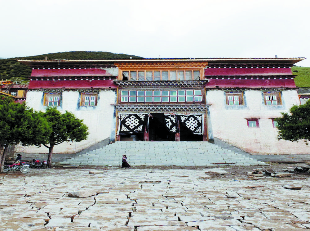 该寺位于稻城县扎冲村。六军团进驻扎冲村后,军团领导与雄登寺取得了联系。雄登寺郑重开会讨论后决定支援红军,先后共支援粮食200多驮(1驮约120市斤),40头菜牛。红军向寺庙赠送了七八支步枪,留了一张说明以后归还的借条。