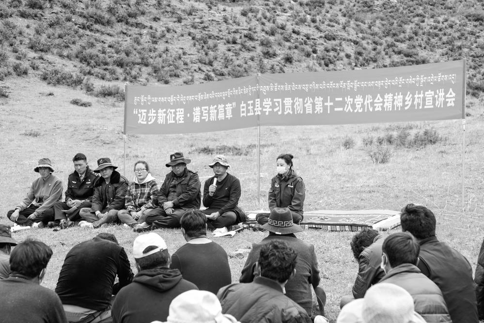 宣讲中,宣讲员生动宣讲了省第十二次党代会精神,介绍了会议召开的时间、地点、背景,以及近年来白玉县各领域发生的历史性变革,详细介绍了大会擘画的未来五年的宏伟蓝图。此外,还宣讲了疫情防控、防雷安全知识、生态环境保护、安全生产、森林草原防灭火、反诈知识、民法典等相关政策和法律法规,一场沾泥土、带露珠、通人心的“坝坝会”,拉开了白玉县省第十二次党代会精神宣讲进乡村的序幕。