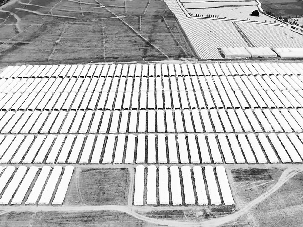 航拍白玉县赠科乡整齐标准的农业大棚。
