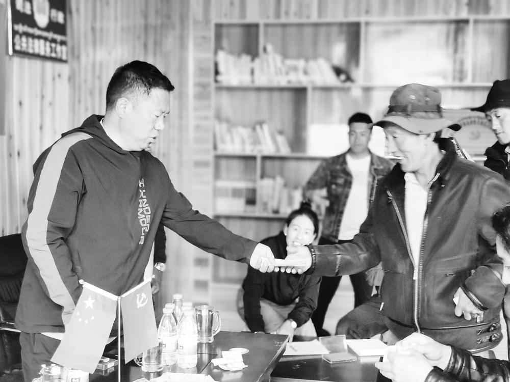 “振业振兴新征程 旺达村分红大会”的横幅在村活动中心会议室内鲜艳显眼,村民们兴高采烈,早早地等候在这里领取分红金。“今年流转费总计130000元,每户可分红5200元。”分红仪式上,上木拉党委书记格绒次乃向村民们介绍了旺达村房屋流转、荒地收益情况和民宿产业下一步规划。在场村民脸上无不洋溢着幸福的笑容,高兴地鼓起了掌。