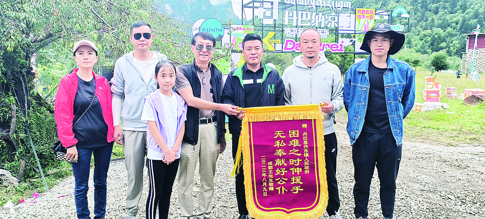 成都游客王先生一家向丹东镇政府送上锦旗。