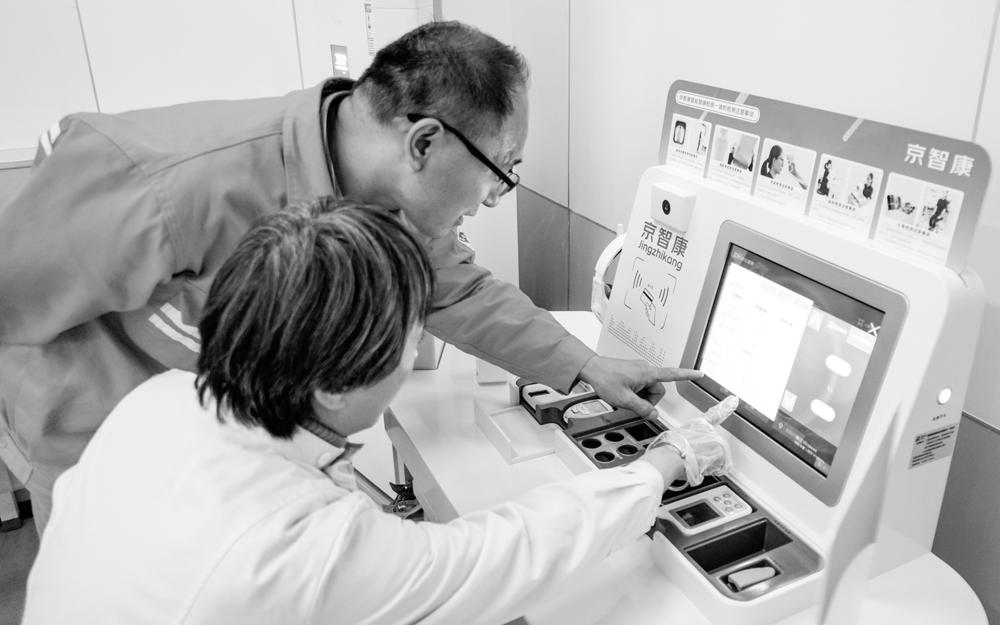 日前,经过近半年的健康数据采集工作,八套矿工“健康预警”系统落户山东能源新矿集团位于内蒙古鄂托克前旗草原深处的长城一矿、二矿、三矿等五个矿区。这个“健康预警”系统是山东能源为服务偏远地区矿工健康建设的。 “矿工健康驿站”与京东健康平台合作,引进了智能健康体检一体机、频谱治疗仪、理疗按摩设备、急诊救治设备、远程医疗问诊系统、职工健康分类统计预警系统等,将全部矿工的体检健康信息录入系统,使患有疑难病症的矿工通过京东远程问诊系统得到北京、上海等地专家的及时诊断,同时患有血压等基础病的矿工健康信息也被下发到生产班组,使一线生产的矿工健康情况得到全天候医疗监测和理疗康复,极大地保障了常年在偏远地区工作的矿工的身体健康。图为矿工在医护人员帮助下通过京东远程医疗系统向内地医生问诊。 新华社 发