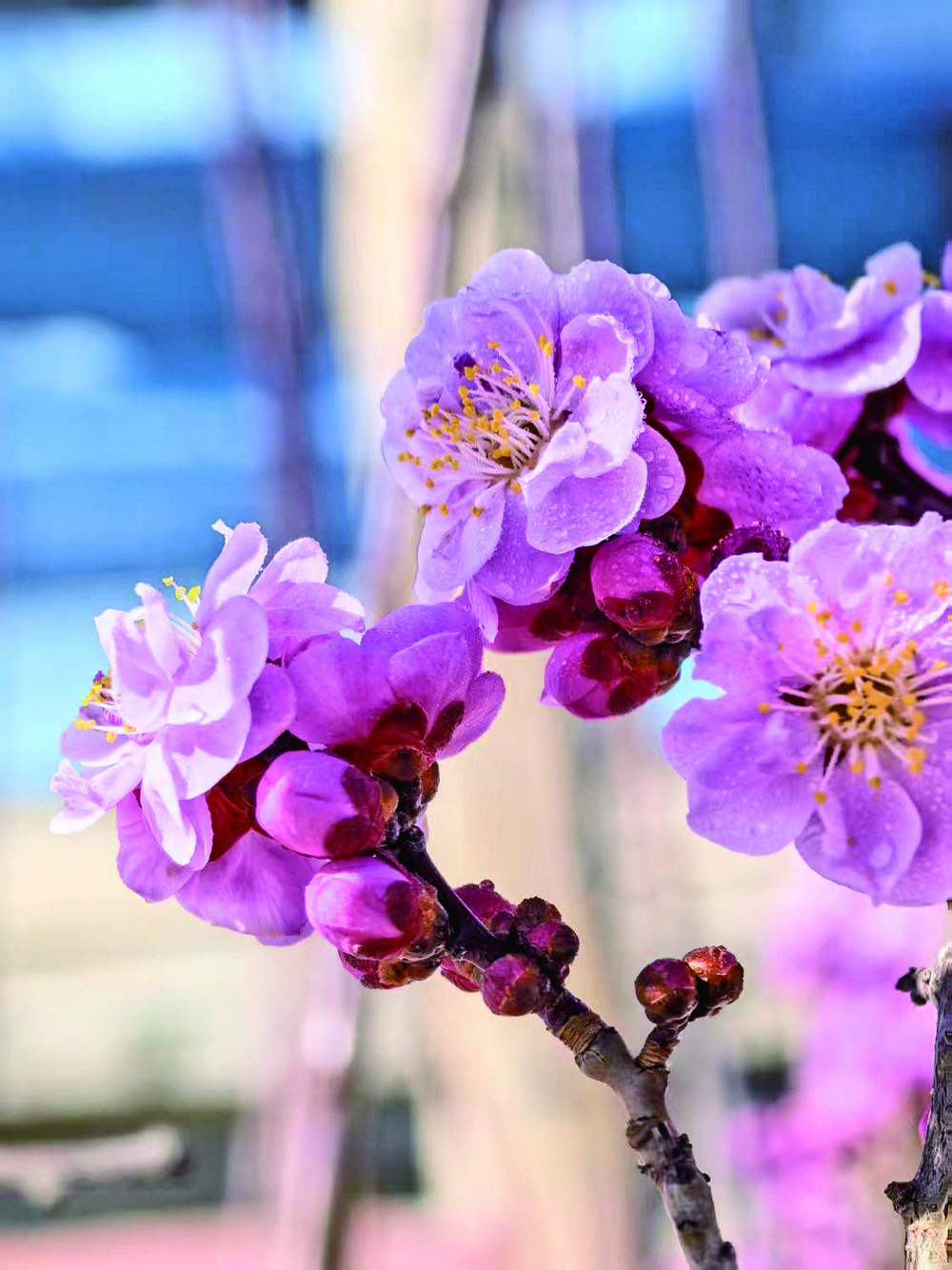 梅花,不仅有着令人陶醉的美丽外表,更以其傲雪凌霜的精神,成为坚韧与不屈的象征。无论是冰天雪地中的独自绽放,还是在料峭春寒里的率先吐蕊,梅花始终以顽强的姿态展现着生命的力量,为城市增添了一份别具一格的文化韵味,让忙碌的人们在不经意间感受到春天的生机与活力,领悟到生命的坚韧与美好。