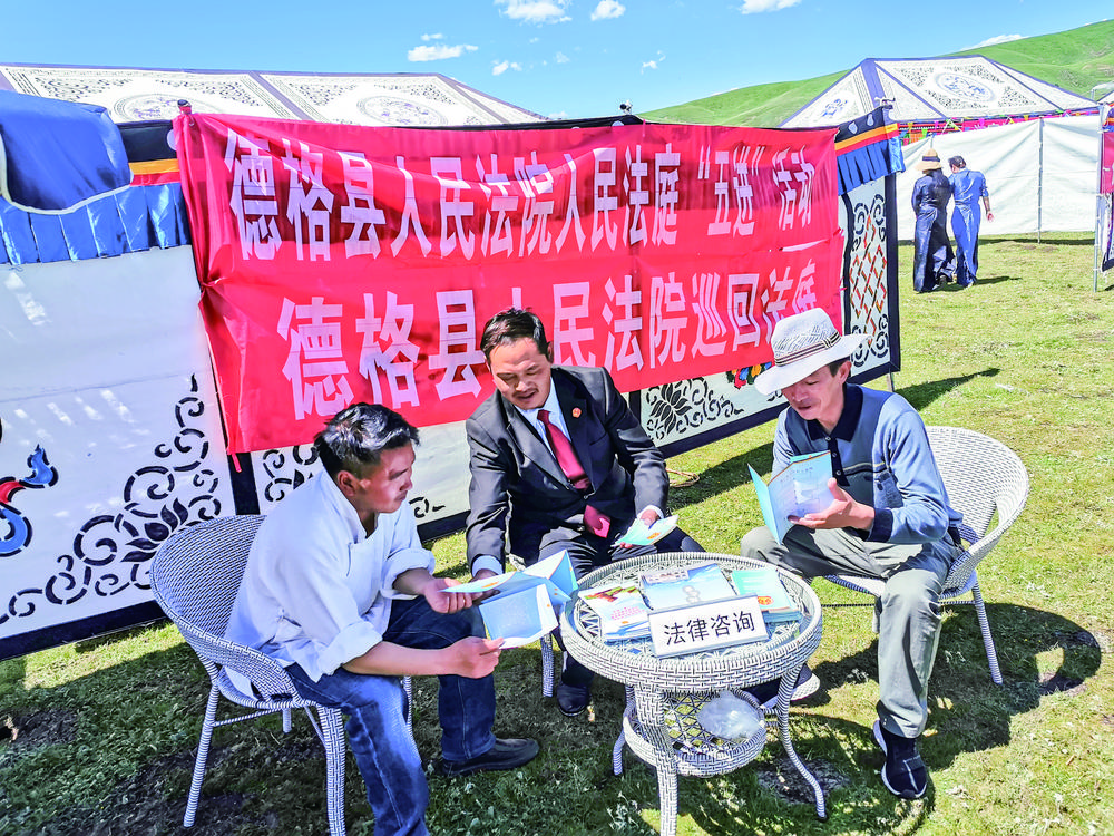 随着德格县雀儿山隧道贯通、格萨尔机场通航,前往德格旅游的游客大幅度增加。为了能提供更加优质的司法服务,助力德格县经济社会发展全面绿色转型,法庭积极升级蜕变,向综合法庭的方向不断升华拓展,功能除了为农牧民化解纠纷、提供司法服务外,还积极拓展生态环境保护和旅游巡回法庭职能。
