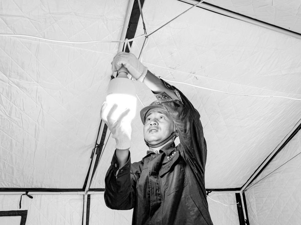来到早已被河水淹没的公路边,10台发电机在泥浆中“渡劫”——先由挖掘机像摆渡船般运送过150米激流,再绑上摩托车在颠簸的山路上跳跃,最后由阿拉伯村村民用脊背接力扛上海拔2000米的骆驼沟。6小时后,当2.7千瓦的发电机点亮便携式灯塔,村民们的手机屏幕接连亮起,泽郎太村长颤抖的手紧握队员:“有了电,希望就回来了!”