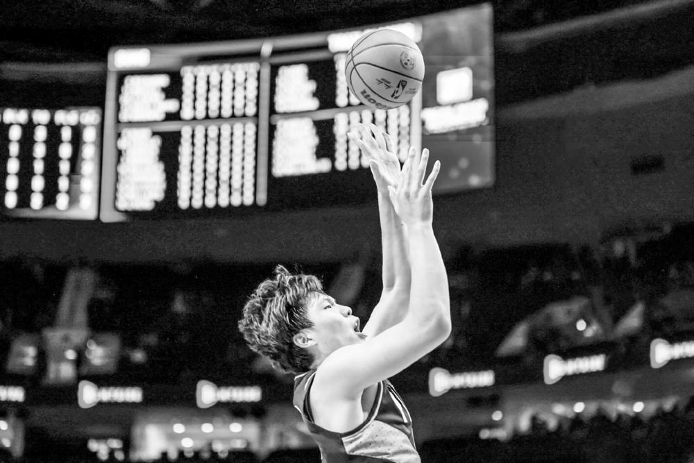 杨瀚森在比赛中。 图片来源:波特兰开拓者队官网