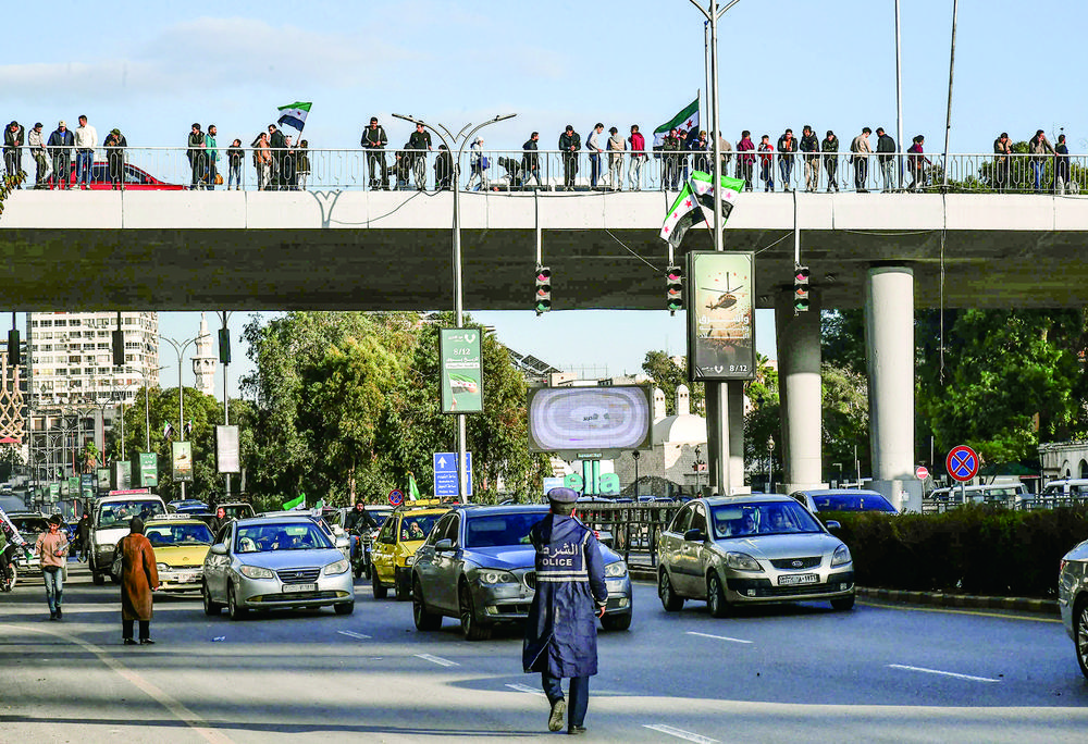12月7日,在叙利亚首都大马士革,人们从一座桥上走过。 新华社 发