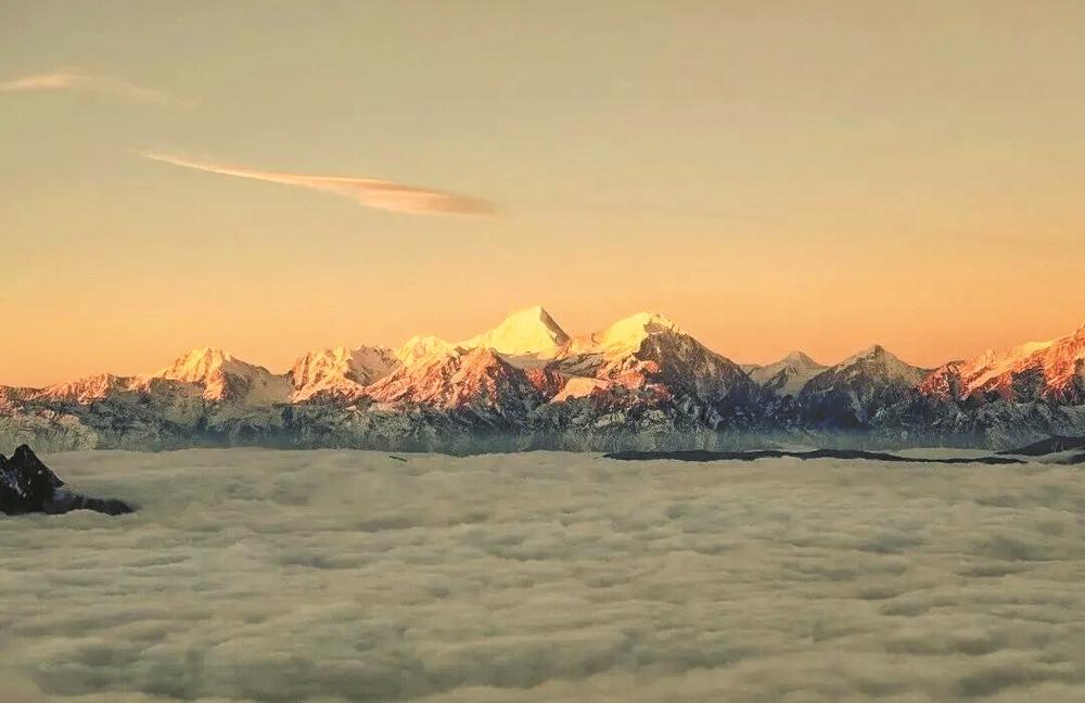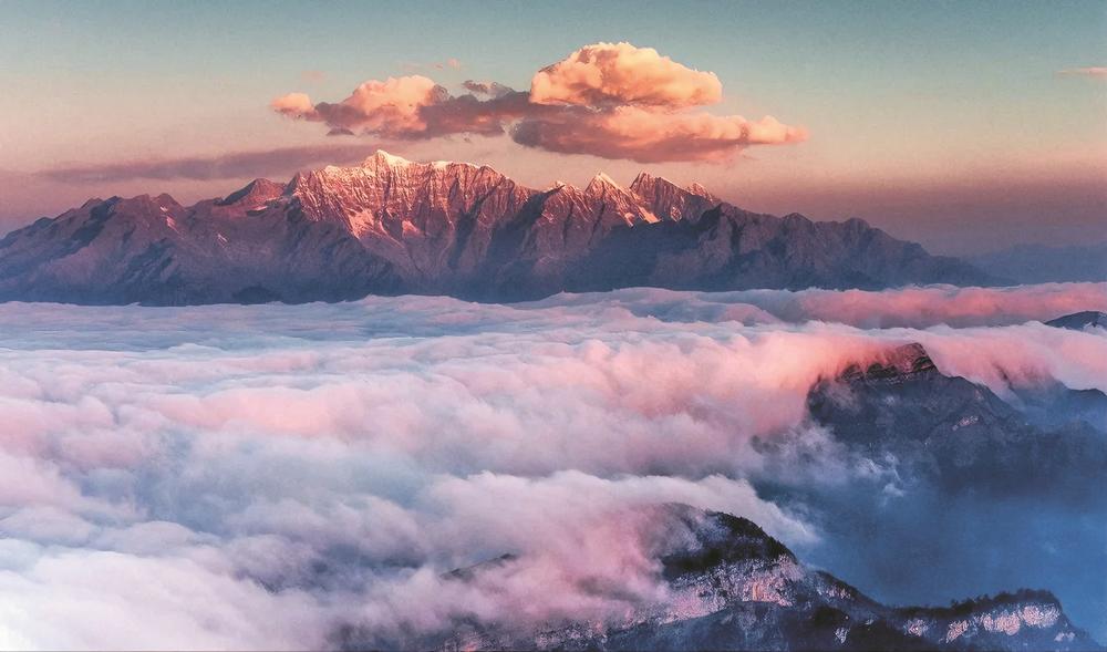 最不能错过的是冬季牛背山的“蜀山之王”视角,贡嘎雪山矗立于牛背山正西,从山顶可观赏到贡嘎全貌,天气晴朗时贡嘎雪山在阳光照耀下形成“日照金山”奇观金光闪耀,气势磅礴是牛背山最具标志性的景观之一。如果运气够好,还能在这里邂逅光影奇观。
