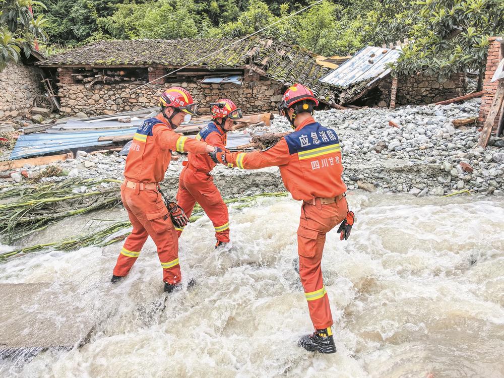 泸定地震发生后,郭正富(中)与同事渡河抢险。 285_05B_20251216