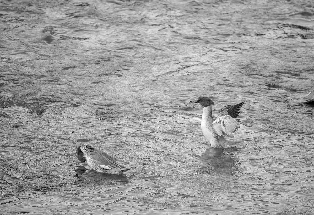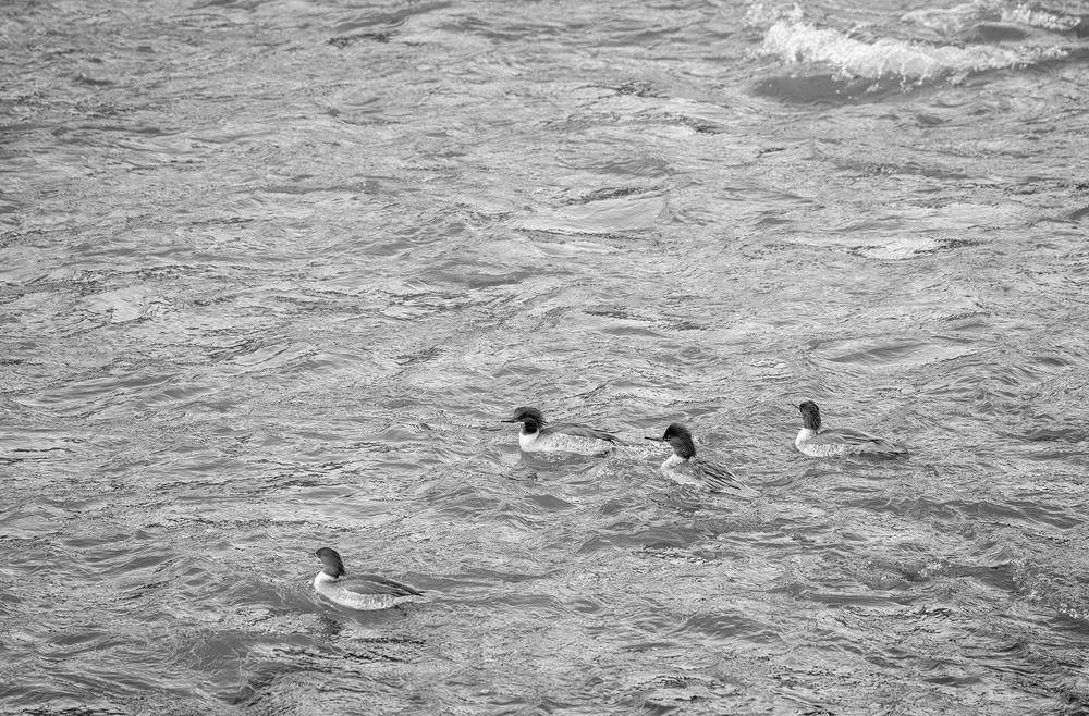 觅食嬉戏的普通秋沙鸭。 曾云海 摄 338_06B_20251217