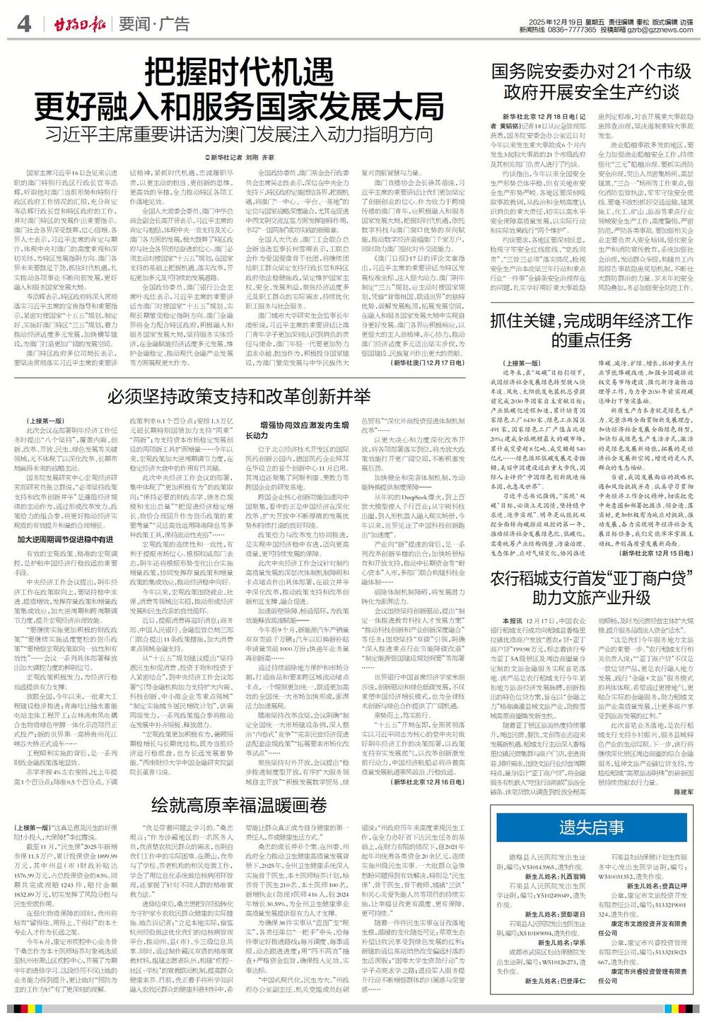 抓住关键,完成明年经济工作的重点任务