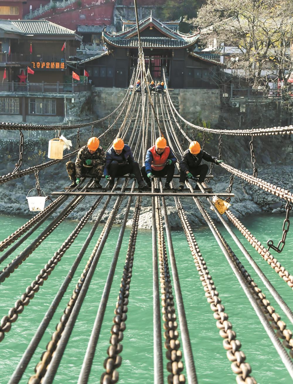 “自第四次全国文物普查启动以来,泸定县以普查为契机,对全县文物实施系统性梳理与精细化保护。”泸定县文物考古研究所相关负责人表示,此次检修严格遵循文物保护规范,所有工序均采用传统工艺,在最大程度保留桥梁原有历史风貌的前提下消除安全隐患,让这座镌刻红色基因的古桥焕发持久生命力。