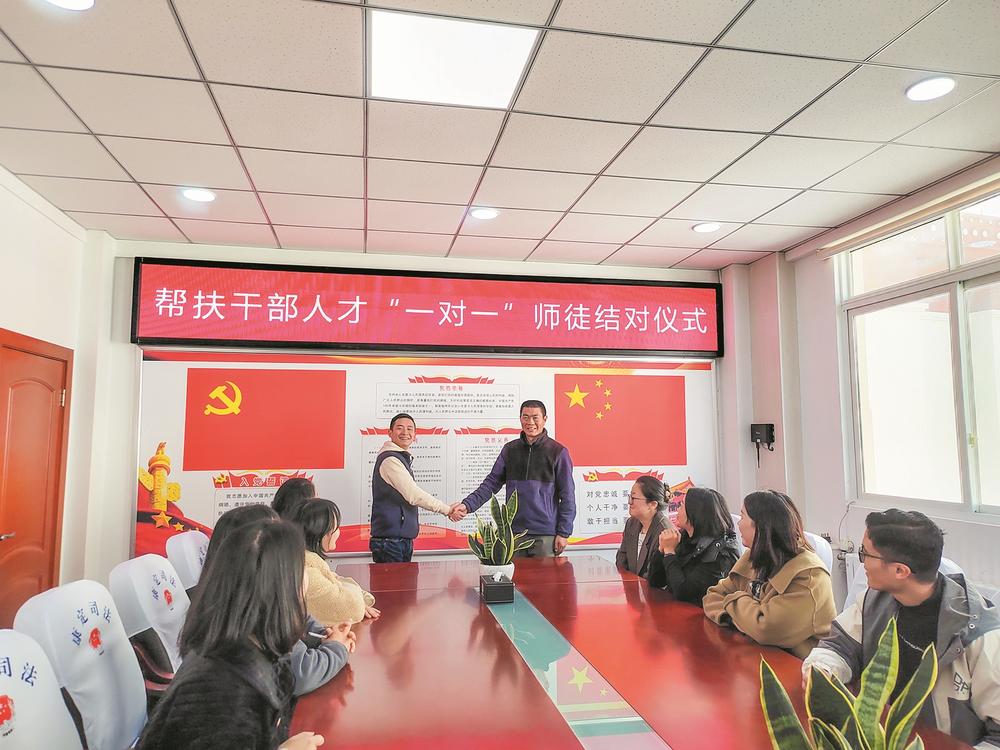 张祥(中右)和年轻干部结成“一对一”师徒。 779_05B_20251224