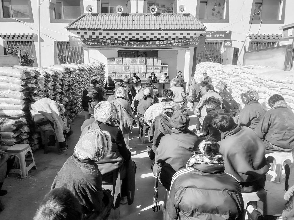 院坝内,领到物资的群众没有立即散去,三三两两聚在一起。“政策真的是一年比一年好,村里执行得也好”“咱们也要争气,把日子过红火”。朴素的对话,让高原阳光显得格外灿烂。