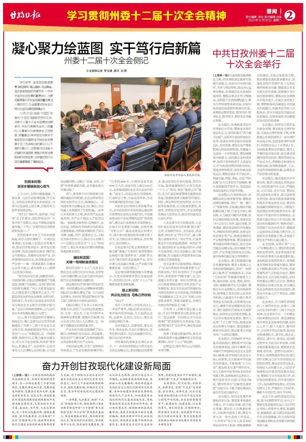 中共甘孜州委十二届十次全会举行