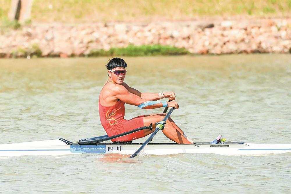 第十五届全运会赛艇男子单人双桨冠军邓志玮。