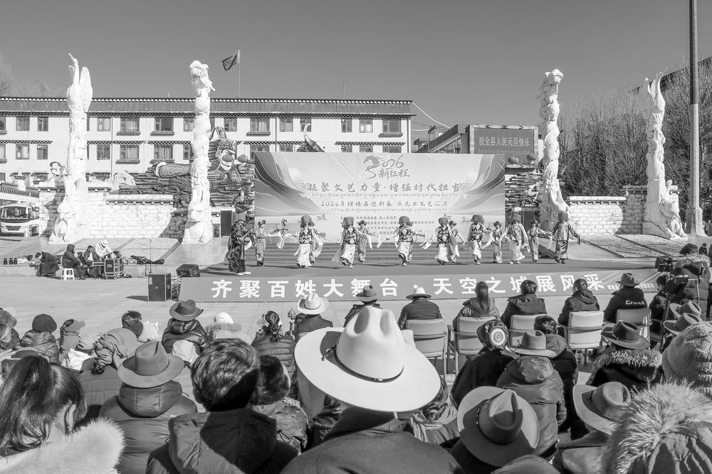 本报讯 2026年元旦,高原小城理塘县洋溢着喜庆与文化的暖流。在格萨尔王广场,“凝聚文艺力量·增强时代担当”元旦文艺汇演火热上演,吸引了千余干部群众及游客欢聚一堂,共赴一场融传统与现代、豪情与温情于一体的文化盛宴。
