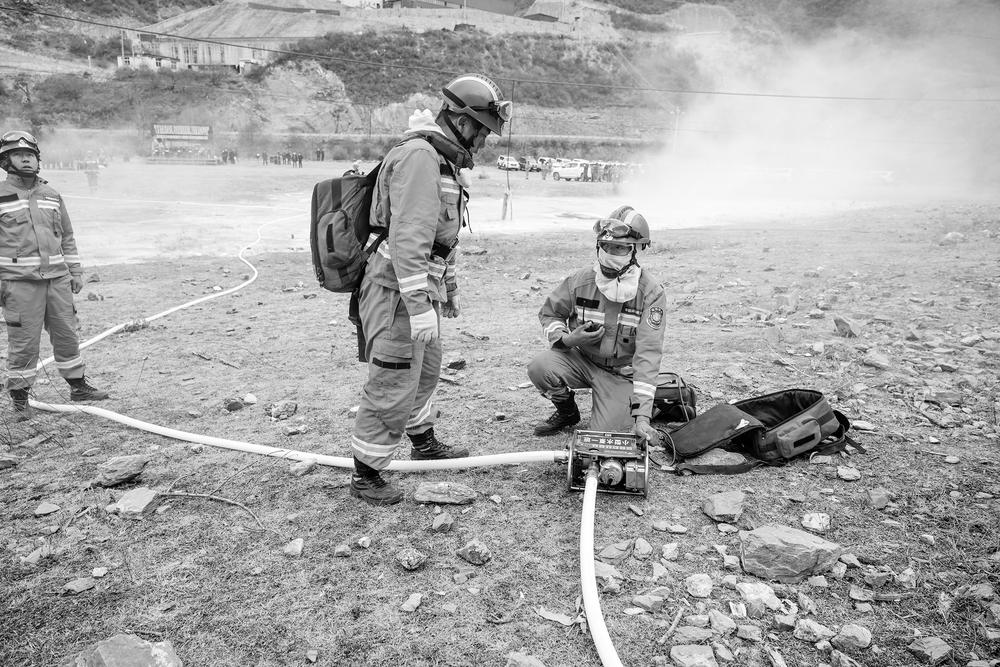 演练结束后,片区协作联动实战技能大比武精彩上演。昌台片区、中区片区、河坡镇、麻绒乡、盖玉镇五支代表队依次登场,各队由1名领队、1名无人机飞手和8名水泵操作手组成,围绕实战扑救核心技能展开同台竞技。赛场上,队员们默契配合、操作娴熟,无人机空中侦察定位、水泵快速架设输水、火情精准处置等科目有条不紊,充分展现了片区协同作战的实战能力。
