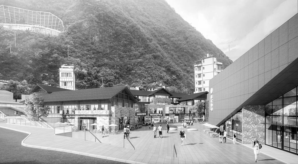 泸定桥景区游客集散中心片区效果图。