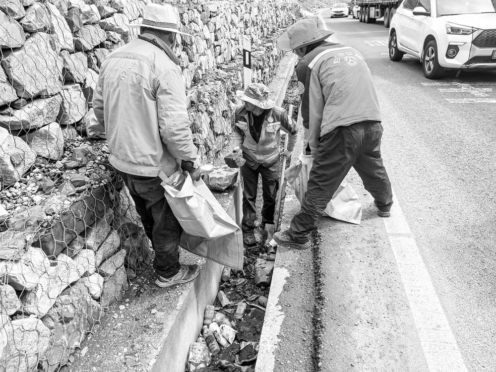 “甘孜的山这么青,水这么蓝,这么好的景色,可不能被垃圾糟蹋了。道路环境是大美甘孜的脸面,得靠我们每个人用心维护。你们来了,看到干净的路、整洁的边沟,才会觉得甘孜值得一来,才会愿意再来。”王康洪的话语总是这么朴实而有力,得到了许多游客理解,有的游客还特意跟随他们在公路上体验捡拾垃圾。
