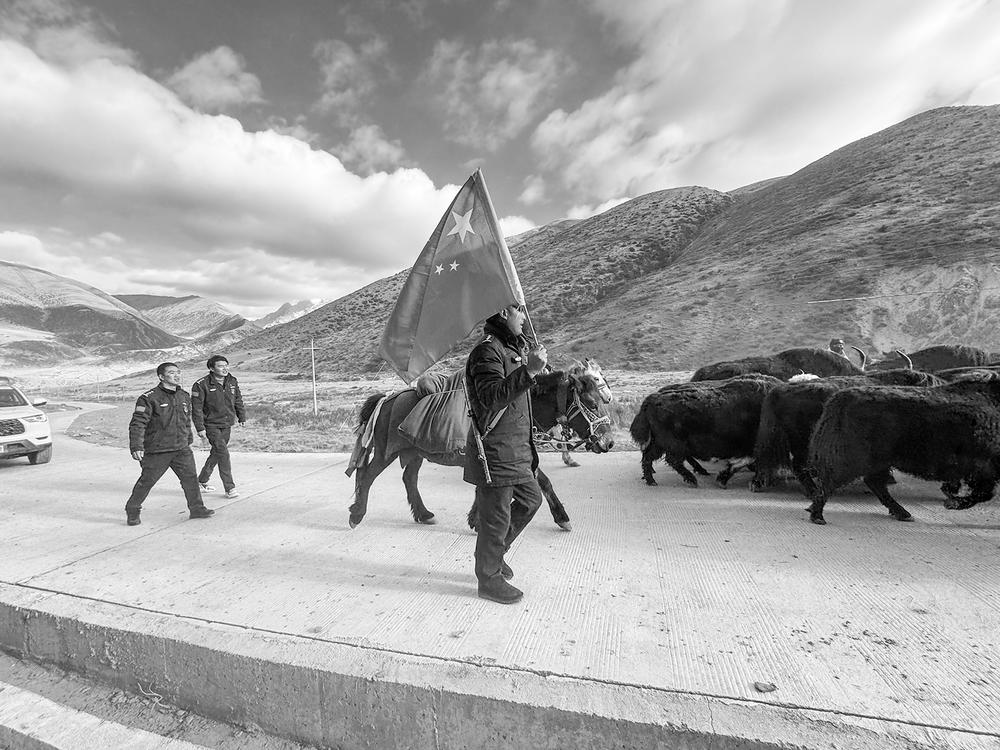 民辅警护送牦牛转场。