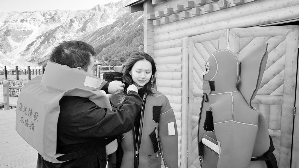来自巴中市的游客罗小珊与朋友利用寒假前来体验,她形容刚下水时“很像小龙虾”,既刺激又自由。“天非常蓝,景色非常漂亮,推荐大家来试试。”重庆大学生彭涨则坦言起初有些害怕,但在工作人员陪同下很快安心下来,“漂在冰上看天空,什么烦恼都没了,非常舒服。”