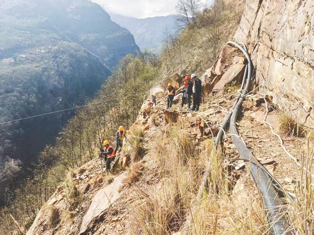 九龙县挖金沟(烟袋)引水工程魁多镇施工现场。