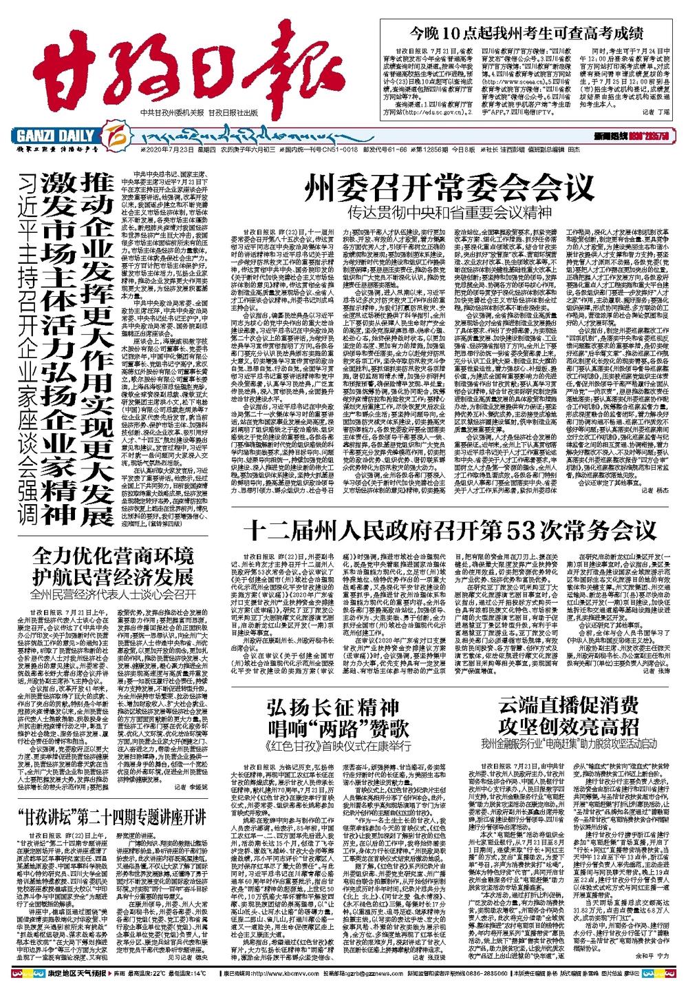 中共甘孜州委机关报·甘孜日报社出版