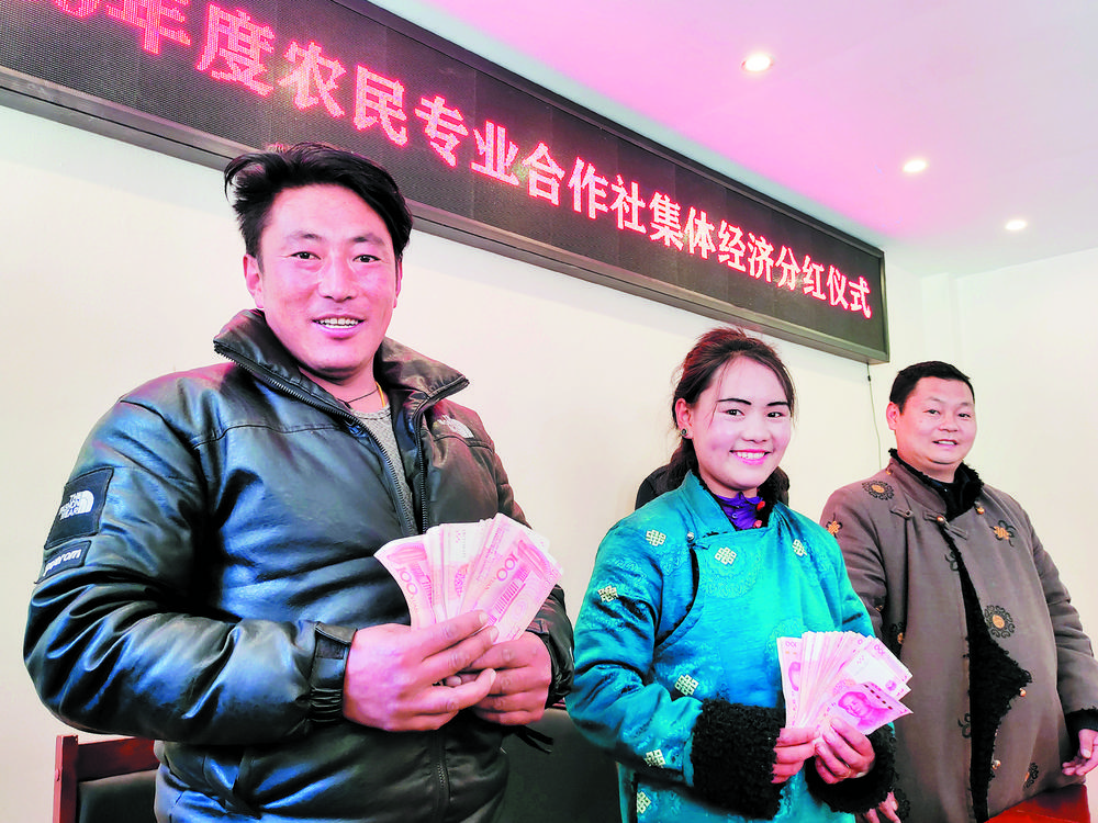 甘孜日报讯 “领到村集体经济分红的428元,心里实在开心。”日前,白玉县热加乡拉巴村贫困户尼玛泽仁领到村级集体经济收益红利时激动地说。2021年新年伊始,热加乡各贫困村相继举行2020年度村集体经济分红仪式,拉巴村当天共有74户村民领到合作社发放的71000元。
