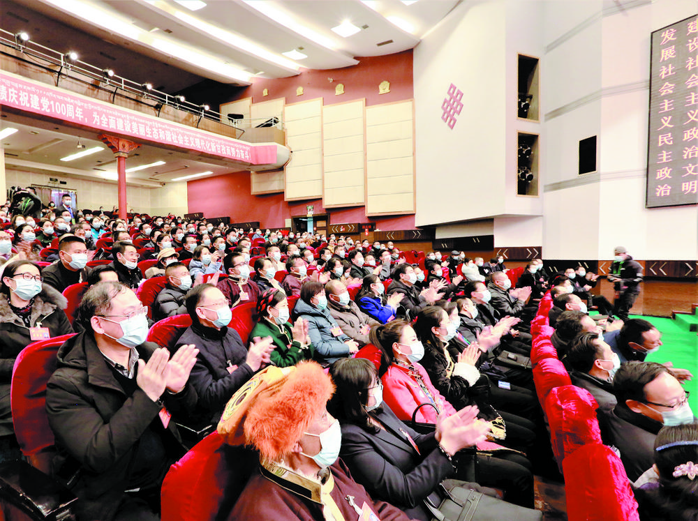 “本次大会安排部署了我州今年经济社会发展主要任务,按法定程序确定了‘十四五’规划和2035年远景目标。我们一定要高举习近平新时代中国特色社会主义思想伟大旗帜,深入贯彻落实党中央大政方针和省委重大决策,紧扣州委‘围绕一个目标、突出两个关键、推进三创联动、抓好四件大事、实施六大战略’总体工作格局,以新时代的精神状态和主人翁的奋斗姿态,咬定目标、坚定信心、保持定力、众志成城、勤勉履职,为建设美丽生态和谐社会主义现代化新甘孜展示‘人大作为’、贡献‘人大力量’!”