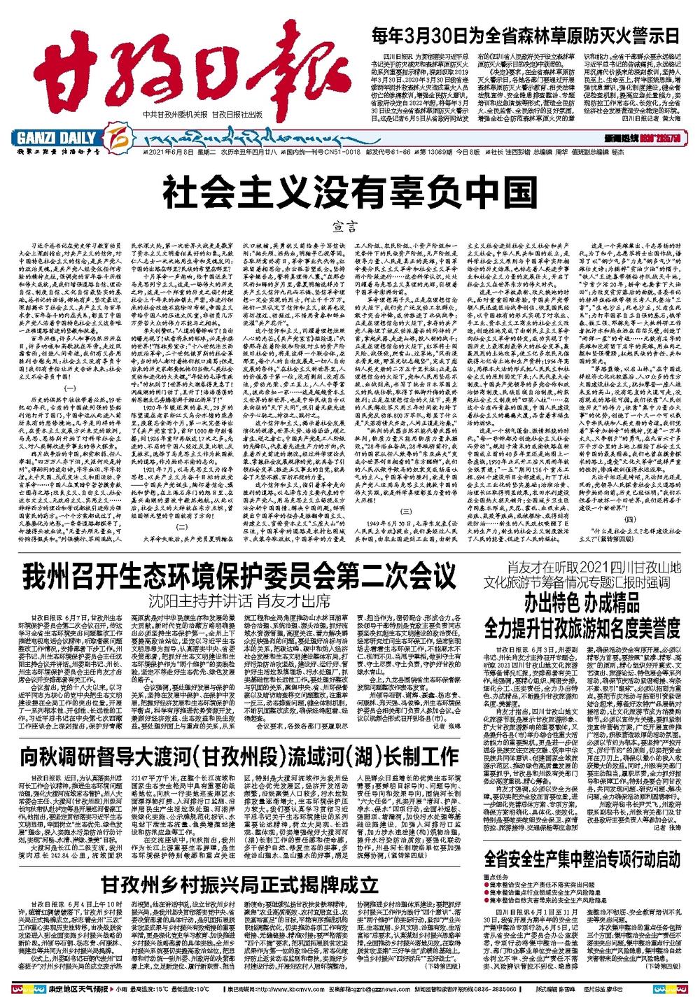 中共甘孜州委机关报·甘孜日报社出版