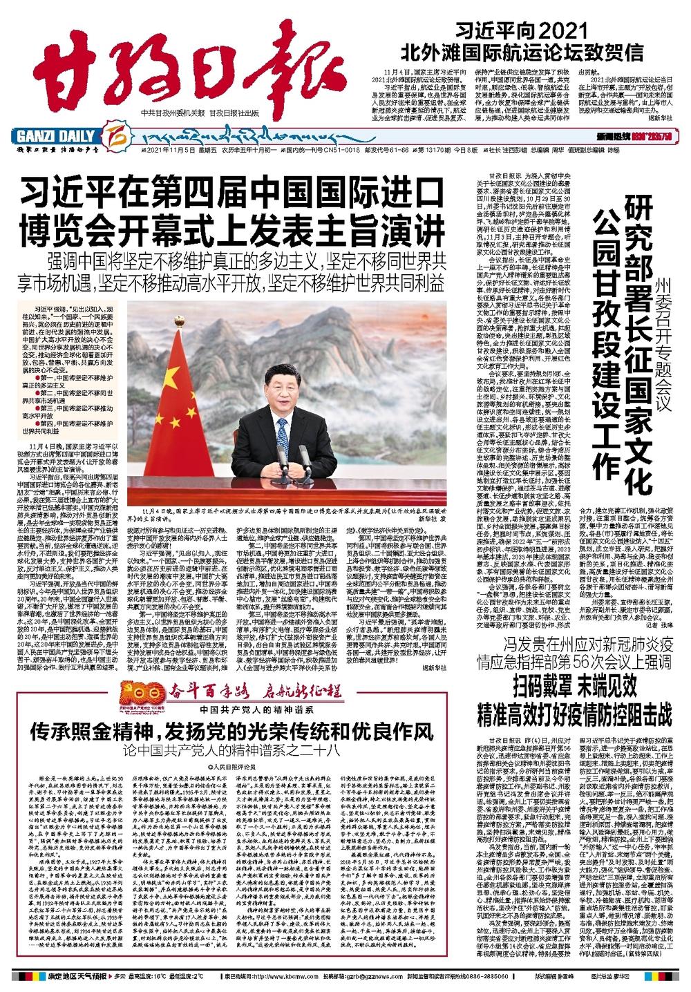 习近平在第四届中国国际进口博览会开幕式上发表主旨演讲