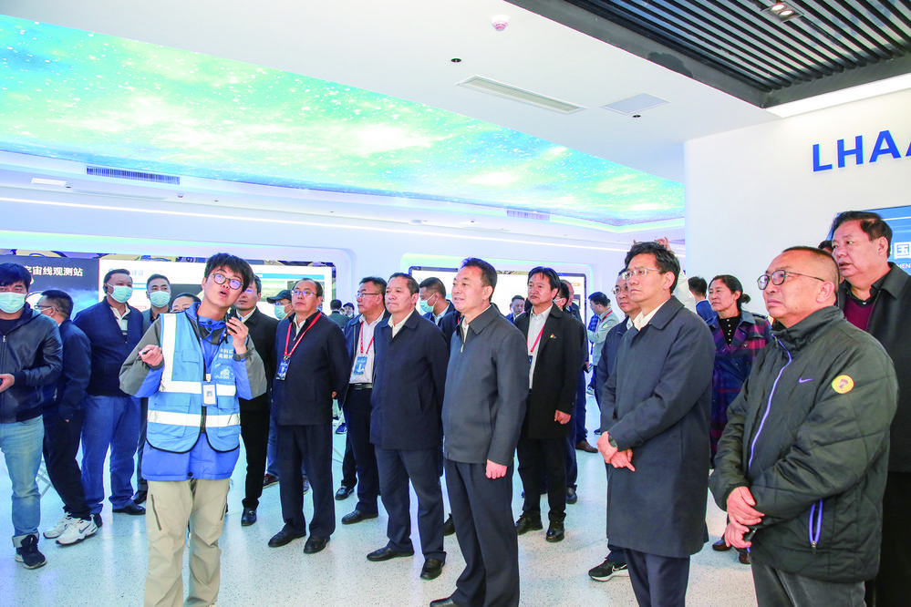 与会人员在高海拔宇宙线观测站测控基地考察。