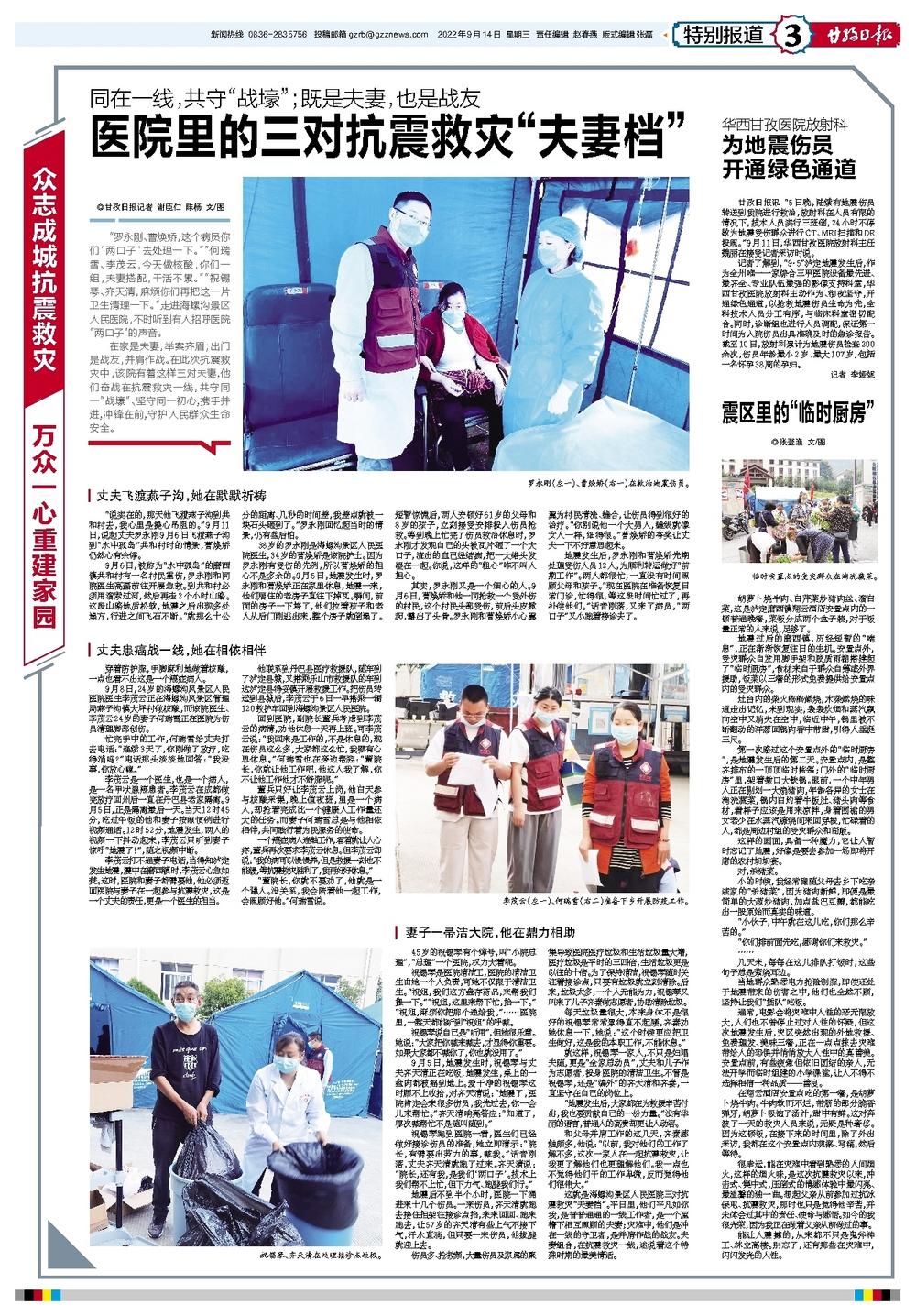 医院里的三对抗震救灾“夫妻档”