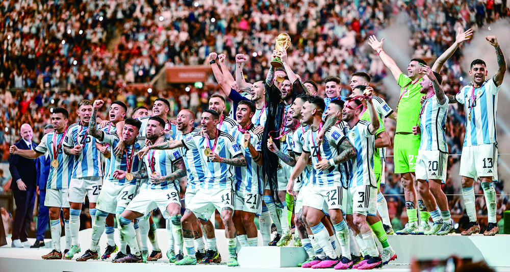 决赛,阿根廷队通过点球大战战胜法国队,时隔36年再次捧起大力神杯,梅西与队友一起圆梦。