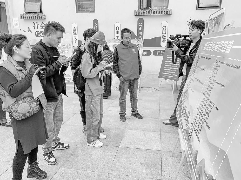 为鼓励广大居民主动了解移风易俗有关内容,现场设立了移风易俗有奖知识问答区,志愿者为答对一定数量者发放文明城市文创奖品。“下列哪几项属于陈规陋习?”不少群众手拿纸笔,围观在答题板前,认真思考,写下一个个答案,并向工作人员兑换奖品。带着孩子来参加活动的居民志玛表示,“移风易俗有利于社会和家庭,我会从自身做起,带动身边家人朋友共同培养文明新风。”