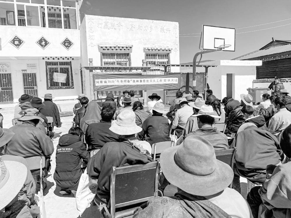 入秋以来,随着气温下降、湿度减弱,森林、草原、湿地的植被含水率降低、干燥易燃,户外旅游、农事用火等野外火源管理难度进一步增大,也让秋冬季森林草原防火工作压力陡增。“大家一定要记住,进山不要带火种。看到有火、有烟马上上报……”在白玉县阿察镇开展的2023年“今冬明春”森林草原防灭火政策宣讲大会上,宣讲员用通俗易懂的本土方言向村民们反复叮嘱防火注意事项。连日来,该镇分别组织人员深入辖区四个行政村开展宣讲大会,宣传森林草原防灭火政策知识,同时以案示警,通过宣讲森林草原火灾典型事例,向群众普及违反森林草原防灭火相关法律法规的严重后果,着力提升大家的防火安全意识,最大限度地预防和减少森林火灾的发生。