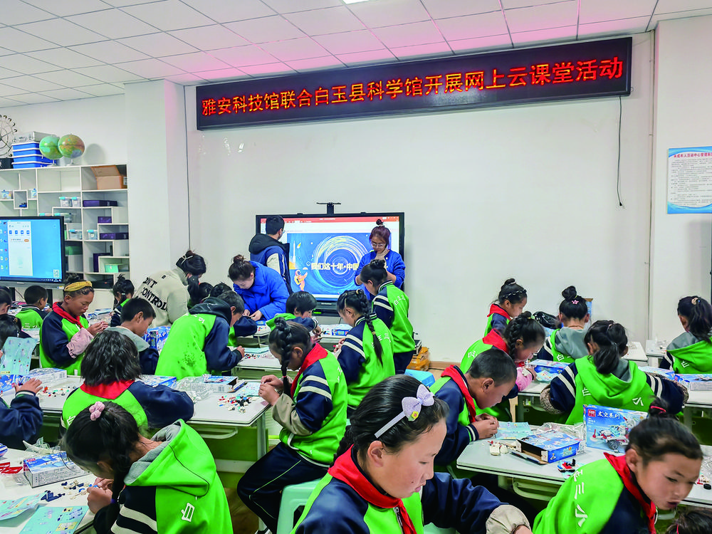 在该县建设镇河东社区,雅安科学技术馆和白玉县科学技术协会,围绕森林草原防灭火、居家用电用气用火安全、包虫病防治、网络安全等主题开展科普宣传活动;在县城区第三完全小学,科学技术馆的老师们通过“一飞冲天”“天宫变变变”“角动量守恒”等实验和科学秀,带领学生们体验气球火箭的发射、模拟在空间站的转身运动、学习火箭升空和角动量守恒原理、了解中国空间站成长过程,深入了解我国航天事业的发展成就;在该县科学馆,老师们通过播放图片、视频,为学生们讲解“中国航天”的由来,激发大家的学习兴趣。