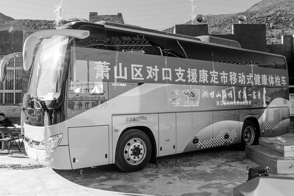 在浙江省杭州市萧山区人民政府代表团的见证下,康定市首辆多功能、一体化的大型数字化移动体检车正式投入使用。在萧康两地对口支援战略的政策支持下,萧山区对口支援康定市购置了价值360万元的一辆移动式健康体检车,车上配备先进的数字化X射线摄影系统(DR)、彩色多普勒超声诊断仪、全自动生化分析仪等多种先进医疗仪器设备,可进行内外科的常规检查,包括血常规、肝功、肾功、血糖、血脂等血液检查和DR、彩超等专项检查,既能满足不同地区人群的体检需求,又能开展不同人群的多项检查。