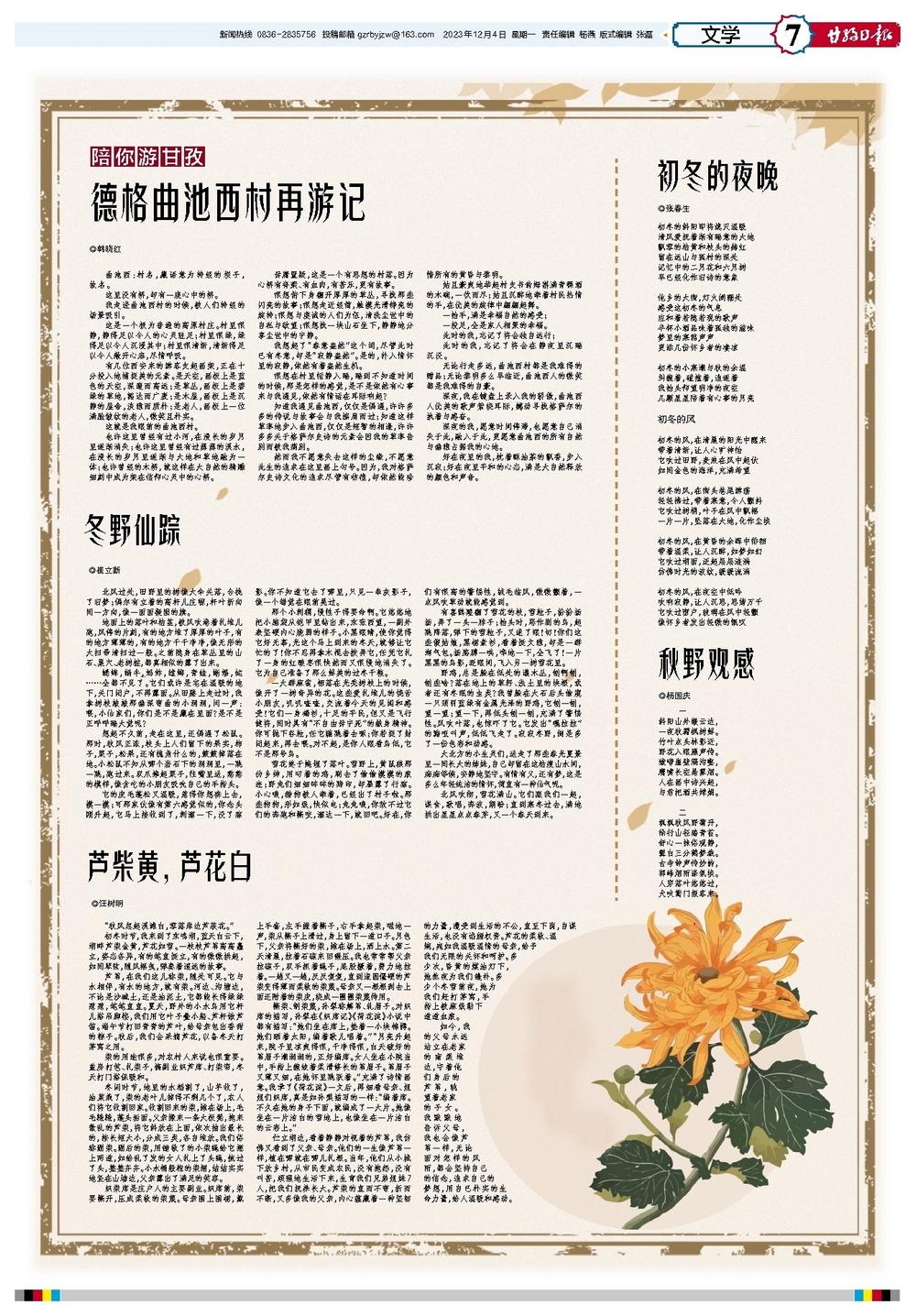 如今,我的父母永远站立在老家的南渠堆边,守着他们身后的芦苇,眺望着老家的子女。我默默地告诉父母,我也会像芦苇一样,无论面对怎样的风雨,都会坚持自己的信念,追求自己的梦想,用自已朴实的生命力量,给人温暖和感动。