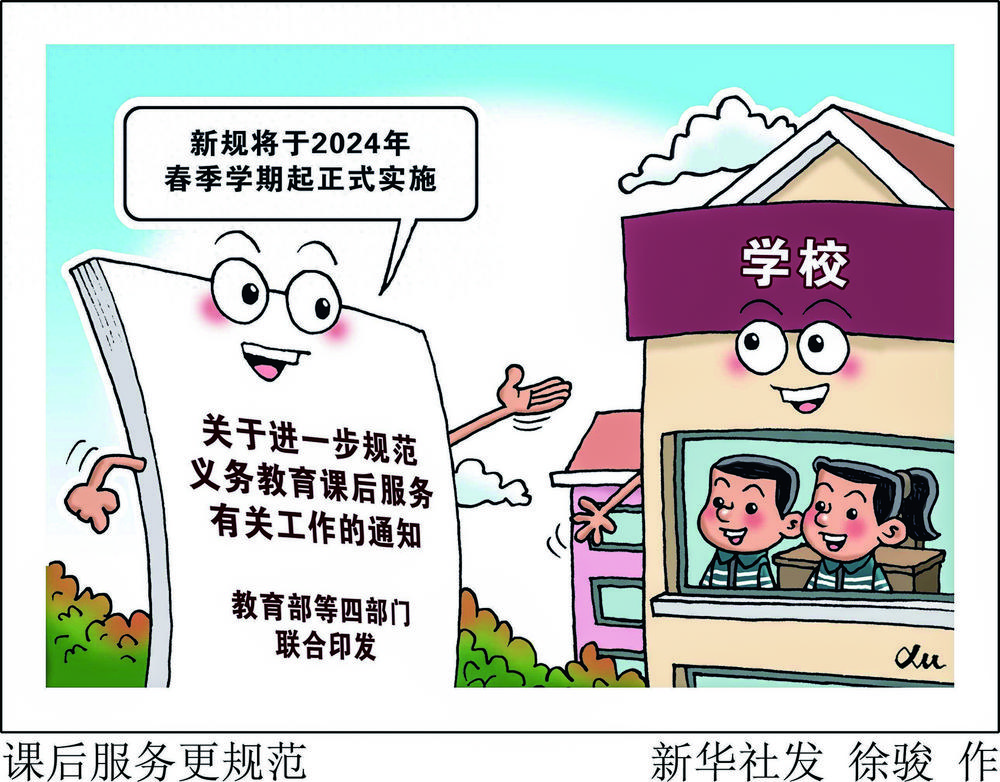 教育部办公厅等四部门日前联合印发《关于进一步规范义务教育课后服务有关工作的通知》。通知要求,严禁随意扩大范围,严禁强制学生参加,严禁增加学生课业负担,严禁以课后服务名义乱收费,严禁不符合条件的机构和人员进校提供课后服务。新规将于2024年春季学期起正式实施。