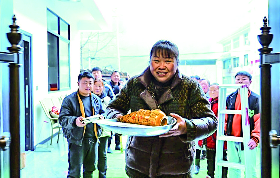 “今天搬进新家了,趁两个儿子都在,过两天把年猪杀了,准备过年,今年是个团圆年!”刘大姐高兴地说着她的计划。